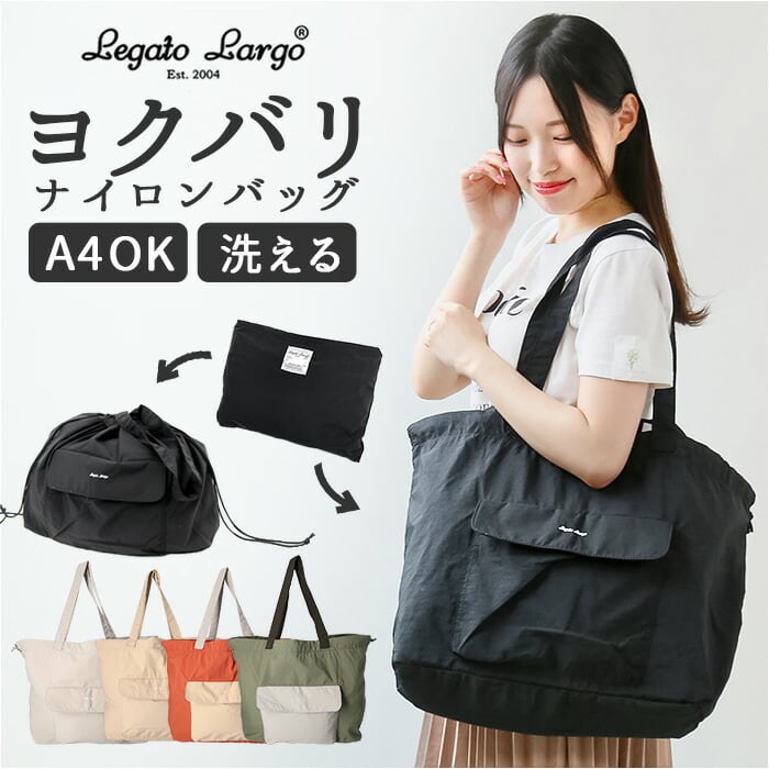 レガートラルゴ トートバッグ LT-V0102 Legato Largo 通販 トートバック トート バッグ ナイロン 大きめ 洗える 洗濯機 軽量 軽い リサイクル生地 パッカブル A4 巾着 サブバッグ ジムバッグ アウトドア YOKUBARI ヨクバリ