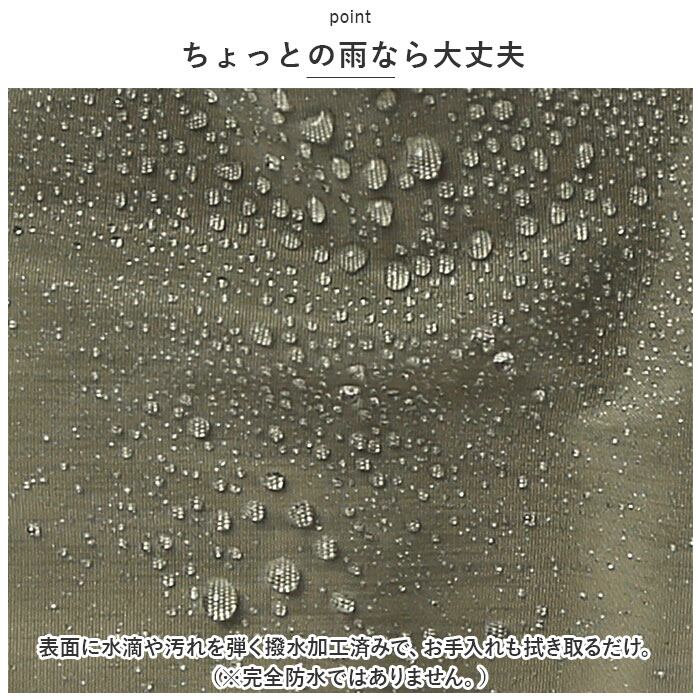 ・表面に水滴や汚れを弾く撥水加工済みで、お手入れも拭き取るだけ。(※完全防水ではありません。)