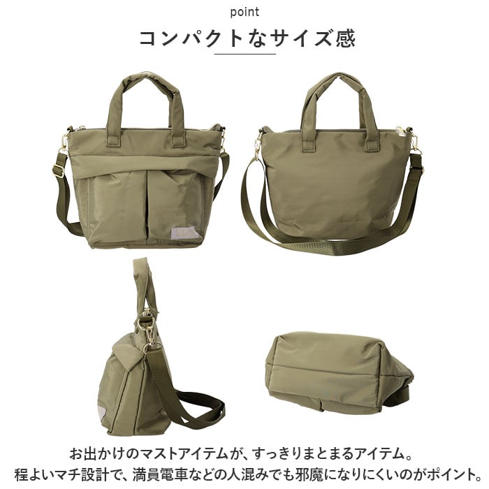 ・お出かけのマストアイテムが、すっきりまとまるアイテム。程よいマチ設計で、満員電車などの人混みでも邪魔になりにくいのがポイント。