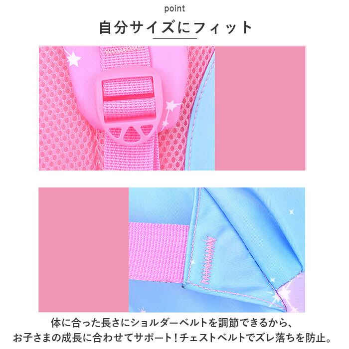 ・体に合った長さにショルダーベルトを調節できるから、お子さまの成長に合わせてサポート!チェストベルトでズレ落ちを防止。