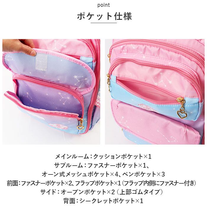 ・サブルーム:ファスナーポケット×1、オープン式メッシュポケット×4、ペンポケット×3