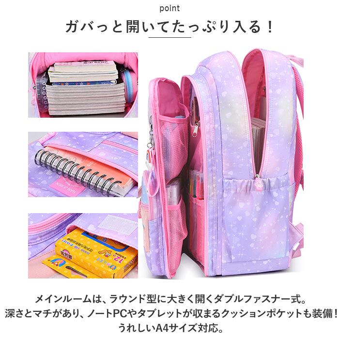 ・メインルームは、ラウンド型に大きく開くダブルファスナー式。深さとマチがあり、ノートPCやタブレットが収まるクッションポケットも装備!うれしいA4サイズ対応。