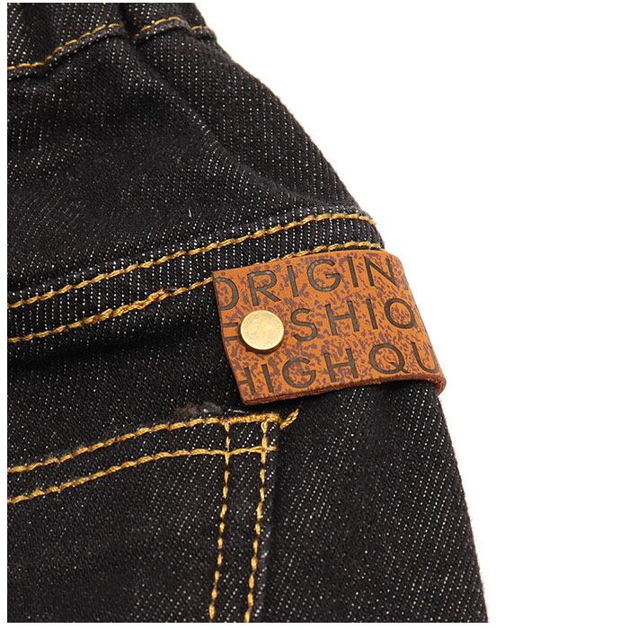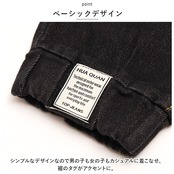 ・お子さまのどんな動きにもフィットする、柔らかいデニム生地を使用。