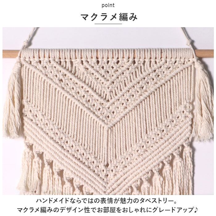 ・ハンドメイドならではの表情が魅力のタペストリー。マクラメ編みのデザイン性でお部屋をおしゃれにグレードアップ♪
