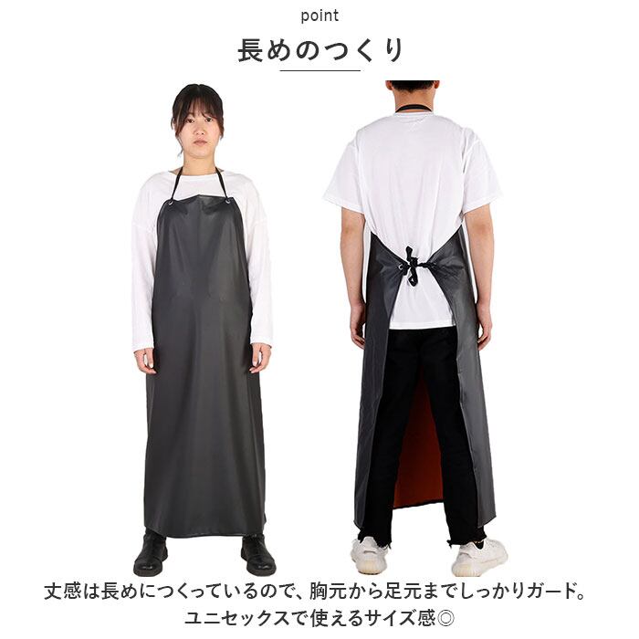 ・シンプルなので、シーンを選ばず着用OK。水産加工や酪農、飲食店などのお仕事現場ではもちろん、釣りやガーデニング、洗車などの趣味タイムでも活躍するアイテム。