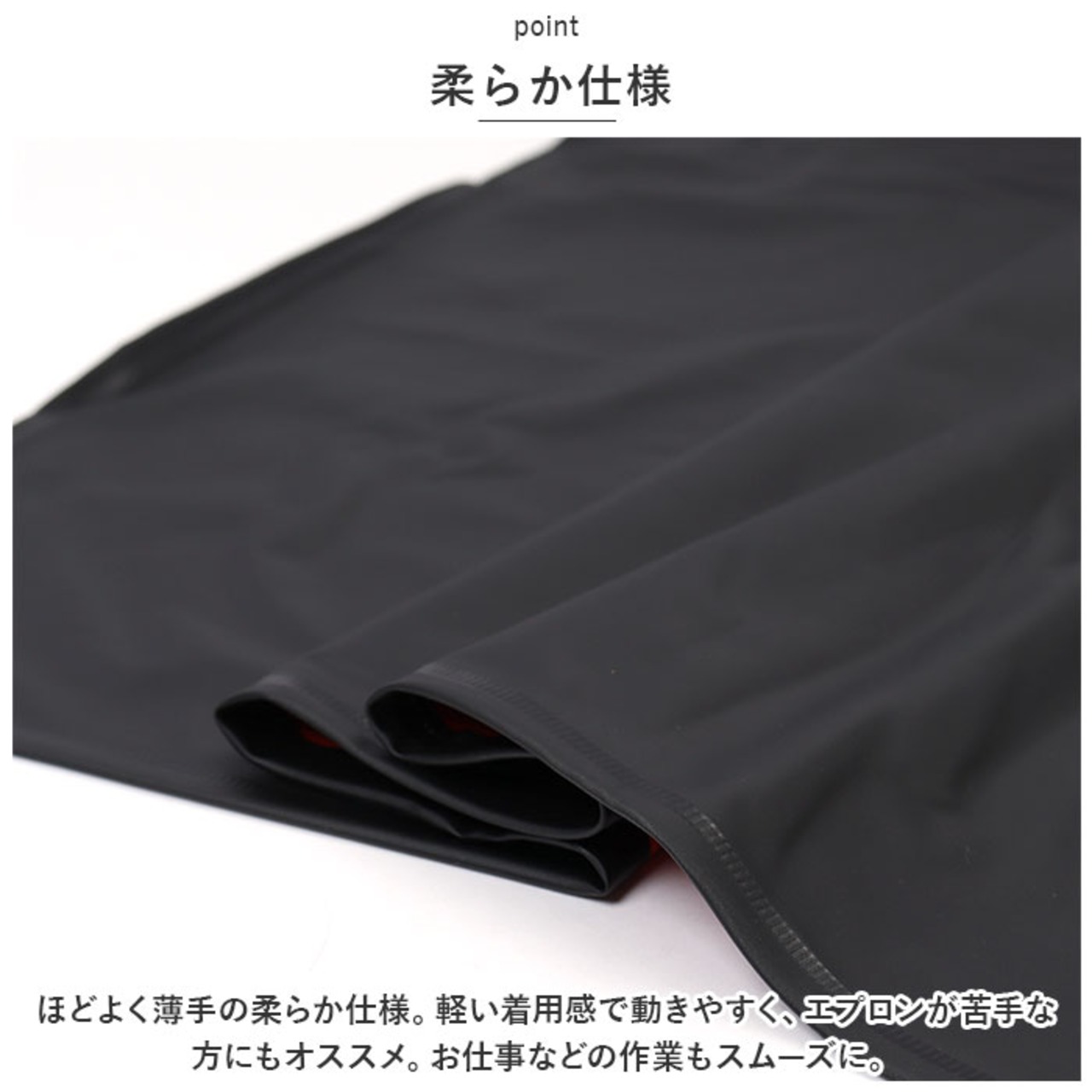 ・ほどよく薄手の柔らか仕様。軽い着用感で動きやすく、エプロンが苦手な方にもオススメ。お仕事などの作業もスムーズに。