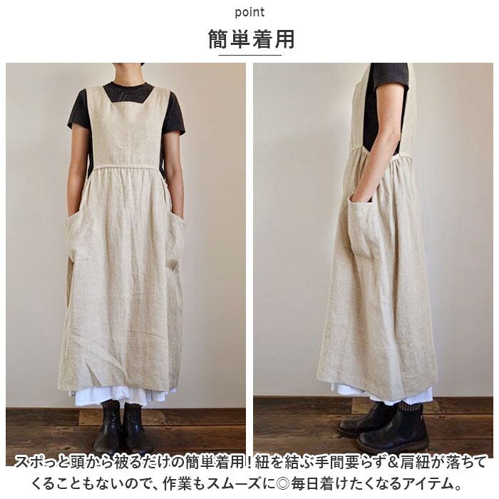 ・スポっと頭から被るだけの簡単着用!紐を結ぶ手間要らず&肩紐が落ちてくることもないので、作業もスムーズに◎毎日着けたくなるアイテム。