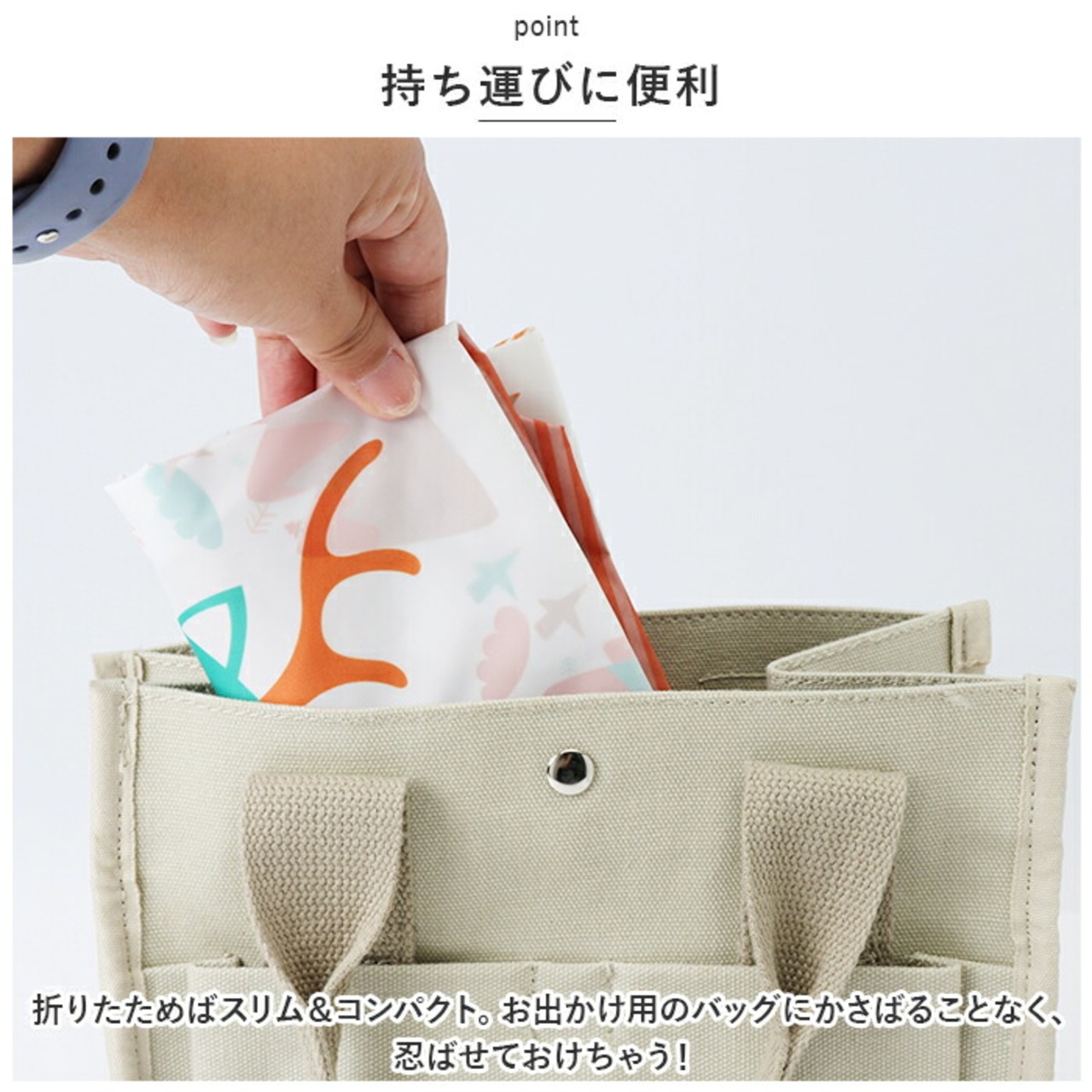 ・折りたためばスリム&コンパクト。お出かけ用のバッグにかさばることなく、忍ばせておけちゃう!
