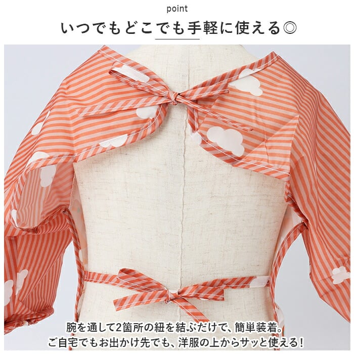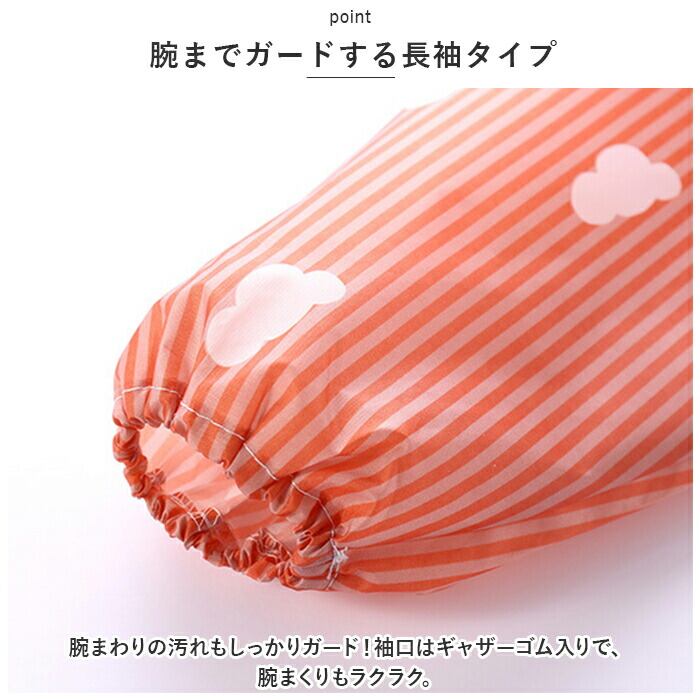 ・腕まわりの汚れもしっかりガード!袖口はギャザーゴム入りで、腕まくりもラクラク。