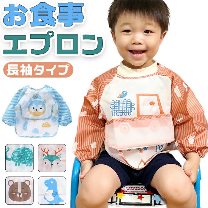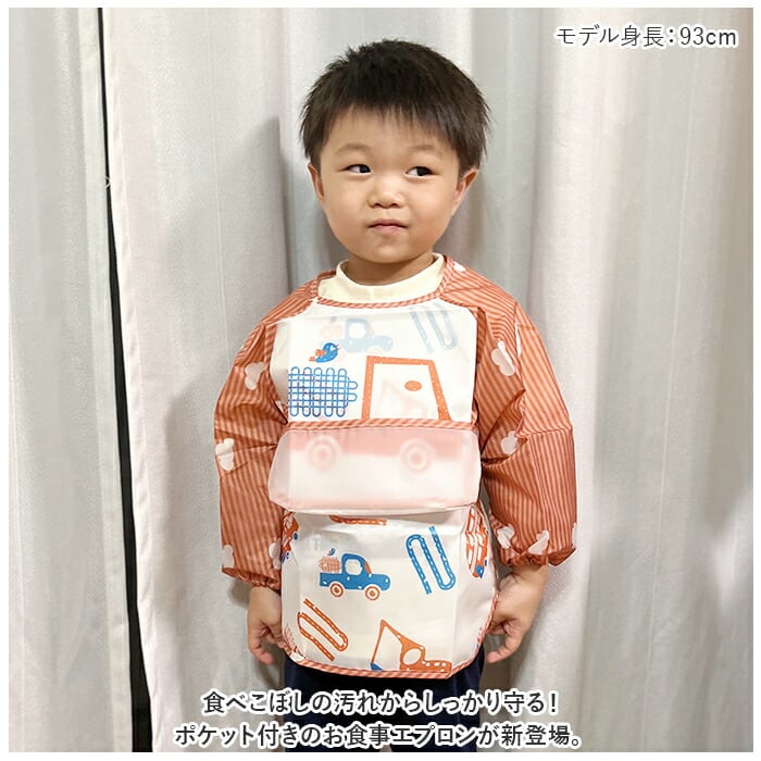 ・食べこぼしの汚れからしっかり守る!ポケット付きのお食事エプロンが新登場。