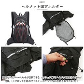 ・メインルーム内側のポケットはハイドレーションシステムに対応し、競技中でも両肩の給水ホース穴から水分補給が可能。(※ハイドレーションシステムとはリュック内の袋に飲料を入れ、左右の肩から口許までのびるチューブによって給水する仕組みのこと。)