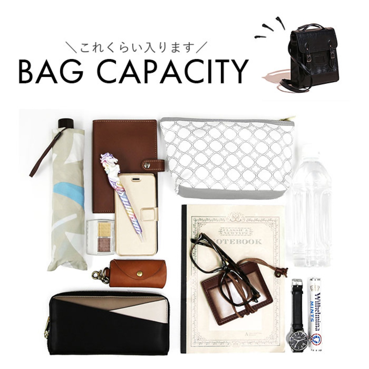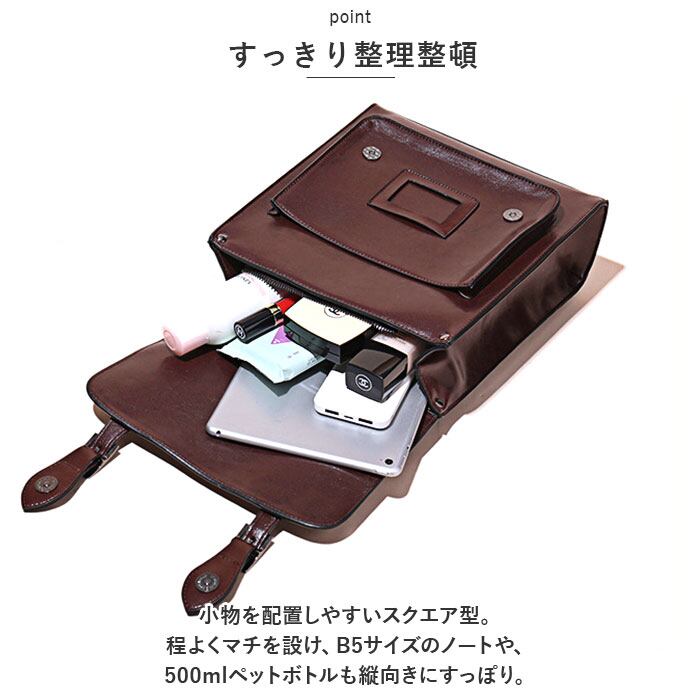 ・小物を配置しやすいスクエア型。程よくマチを設け、B5サイズのノートや、500mlペットボトルも縦向きにすっぽり。