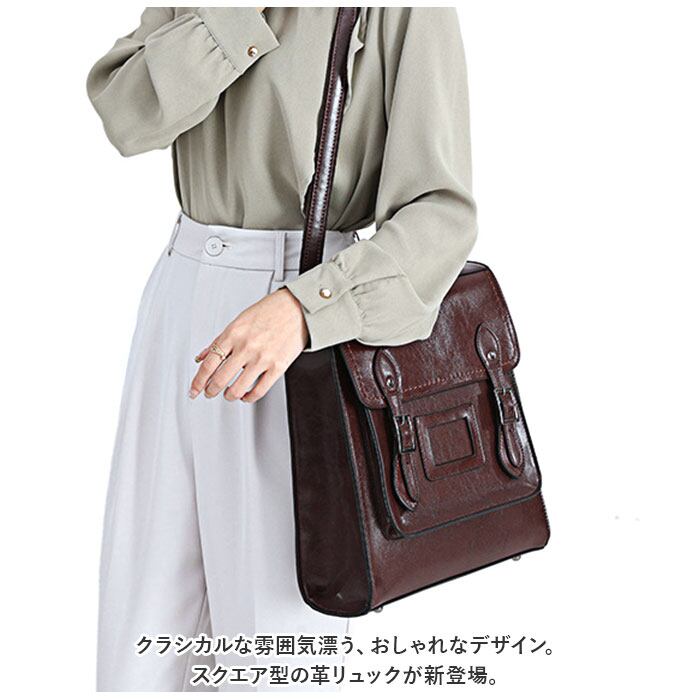 ・クラシカルな雰囲気漂う、おしゃれなデザイン。スクエア型の革リュックが新登場。