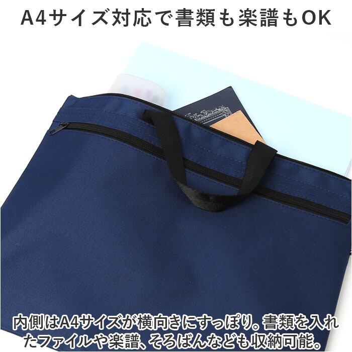 ・内側はA4サイズが横向きにすっぽり。書類を入れたファイルや楽譜、そろばんなども収納可能。