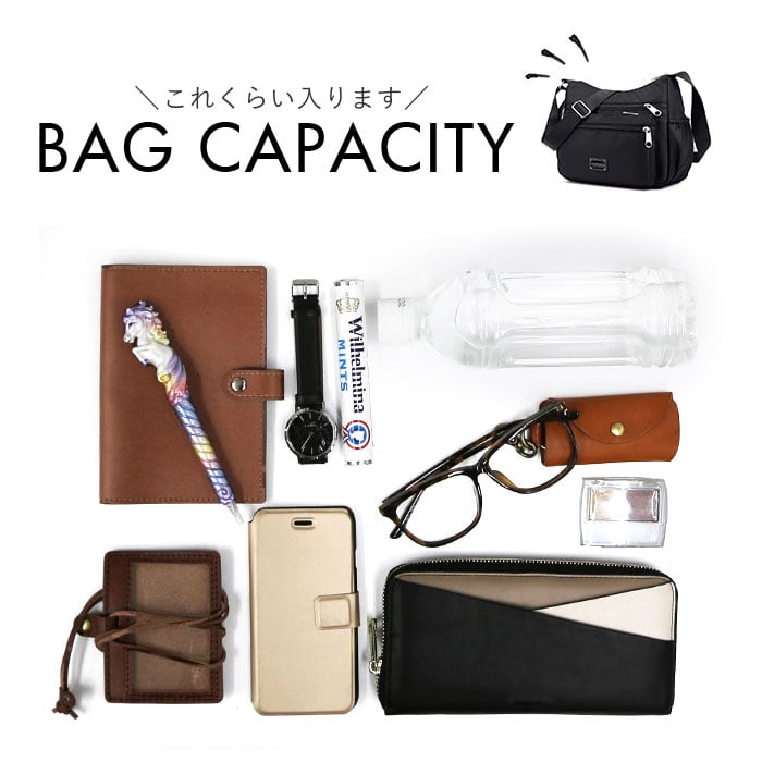 ・手軽に持ち出せるサイズ感ながら、お出かけに必要な小物がしっかりひとまとめ!両手が空くので、アクティブシーンにもおすすめ◎