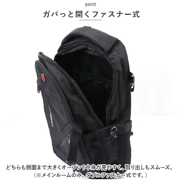 ・どちらも側面まで大きくオープン!中身が見やすく、取り出しもスムーズ。(※メインルームのみ、ダブルファスナー式です。)