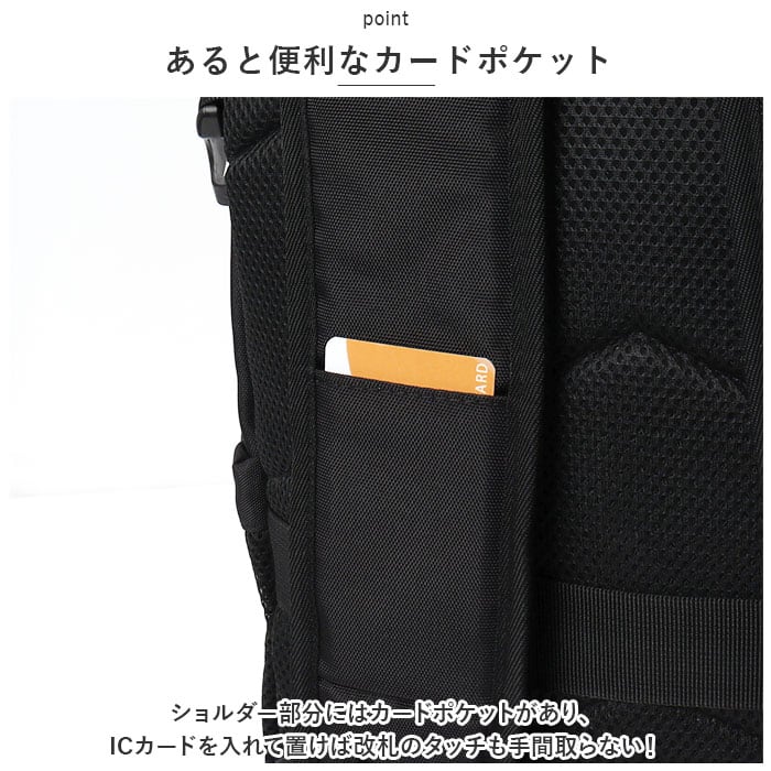 ・ショルダー部分にはカードポケットがあり、ICカードを入れて置けば改札のタッチも手間取らない!