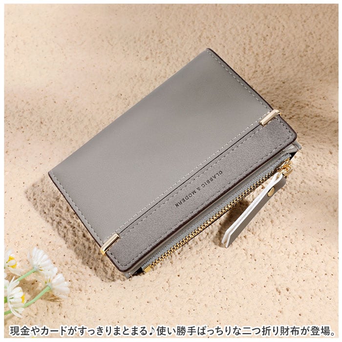 ・現金やカードがすっきりまとまる♪使い勝手ばっちりな二つ折り財布が登場。
