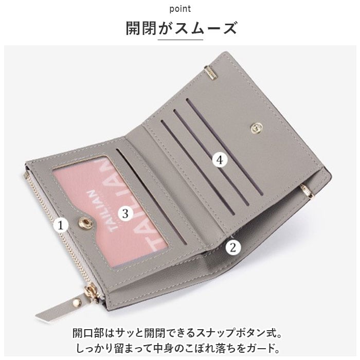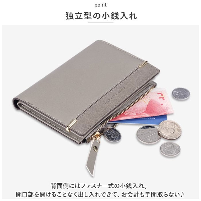 ・背面側にはファスナー式の小銭入れ。開口部を開けることなく出し入れできて、お会計も手間取らない♪