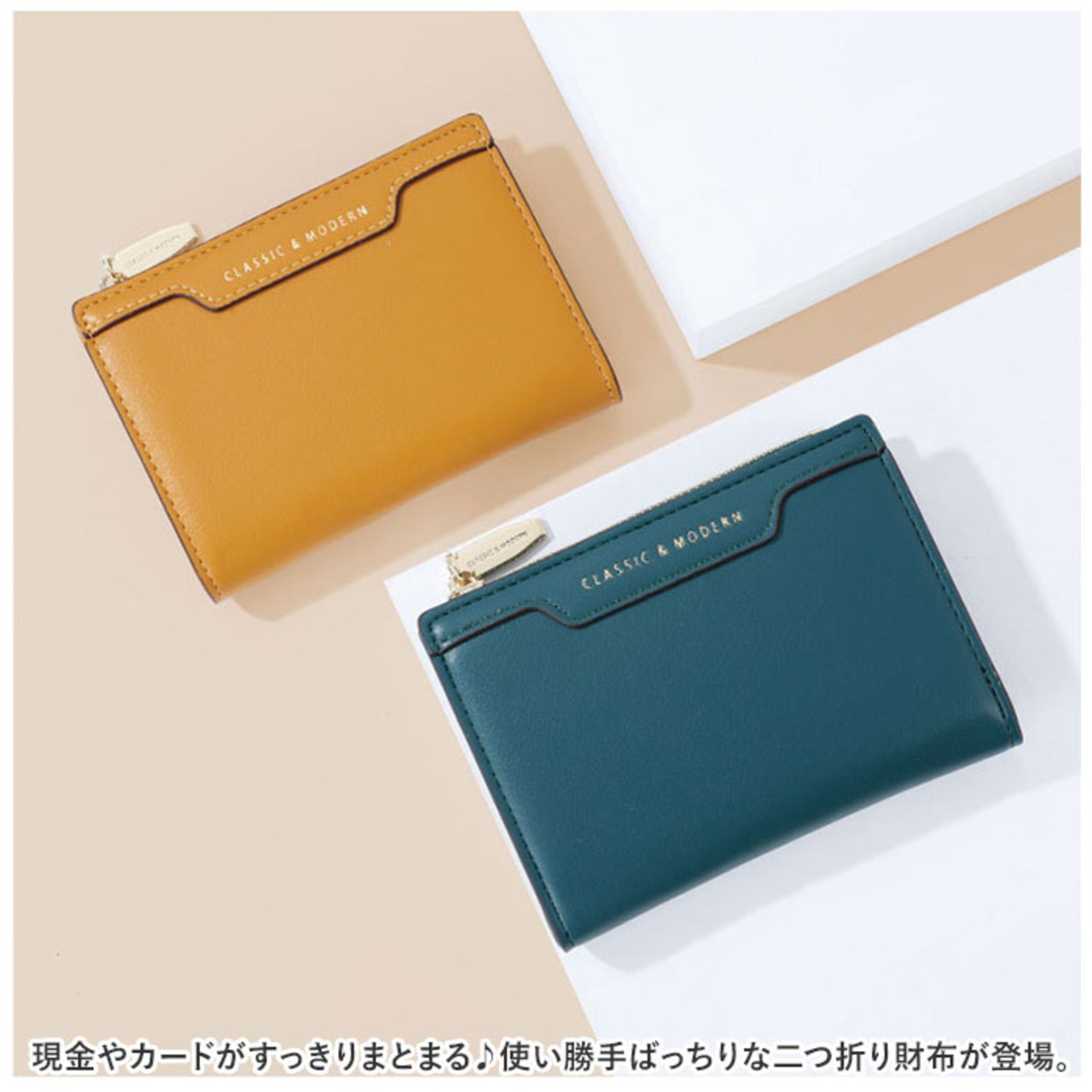 ・現金やカードがすっきりまとまる♪使い勝手ばっちりな二つ折り財布が登場。