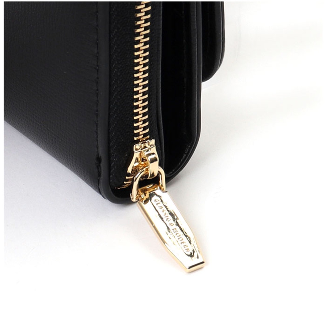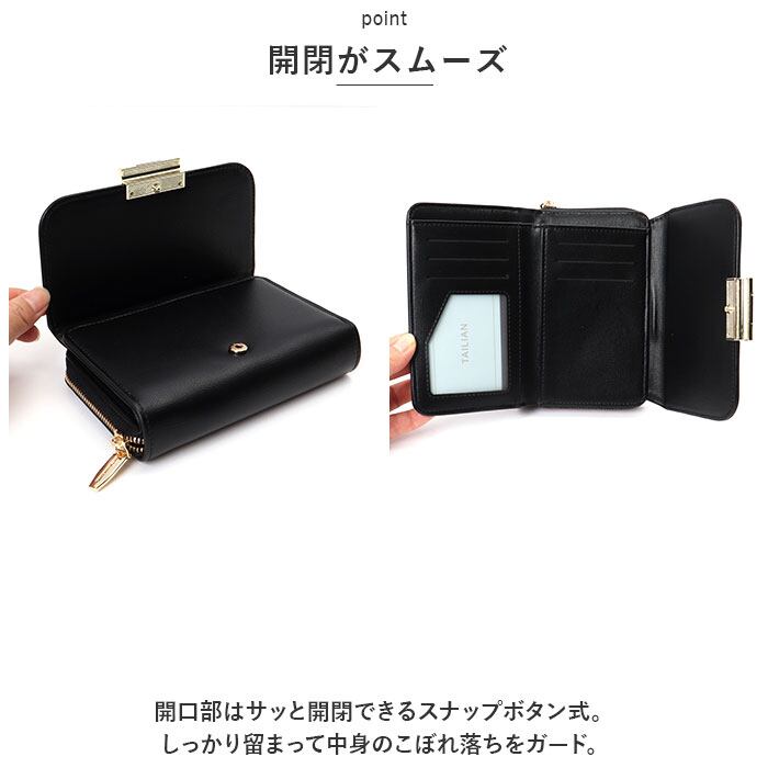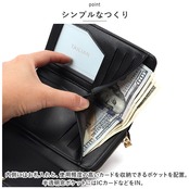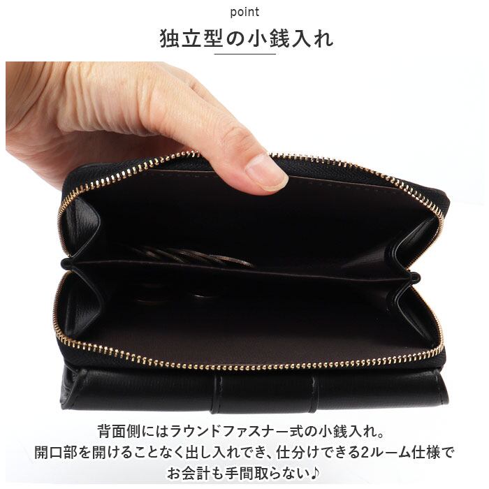 ・背面側にはラウンドファスナー式の小銭入れ。開口部を開けることなく出し入れでき、仕分けできる2ルーム仕様でお会計も手間取らない♪