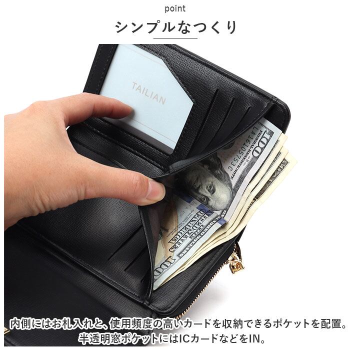 ・内側にはお札入れと、使用頻度の高いカードを収納できるポケットを配置。半透明窓ポケットにはICカードなどをIN。