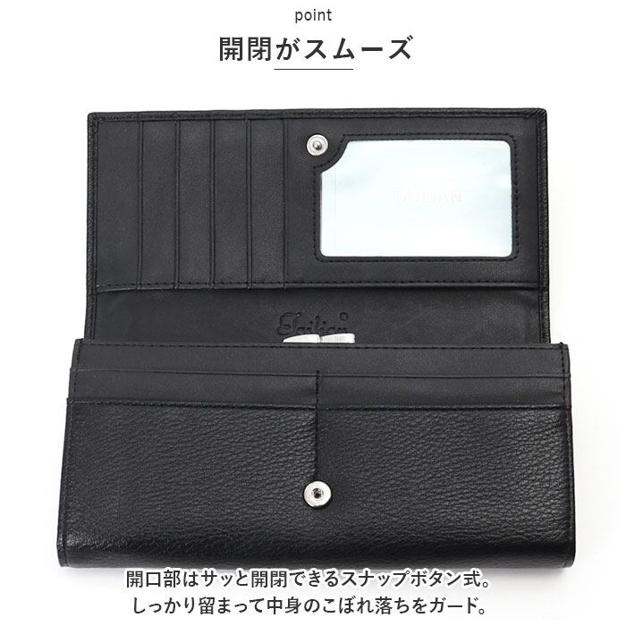 ・内側にはお札やレシートを入れるスペース、カードポケットなどを装備。クリア窓ポケットにはICカードなどをIN。中身を確認しやすく、出し入れもラクラク。
