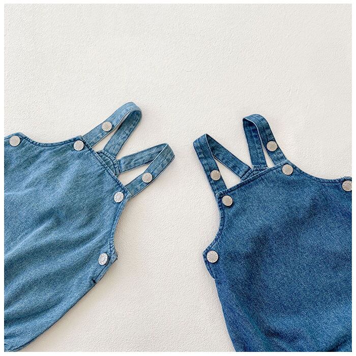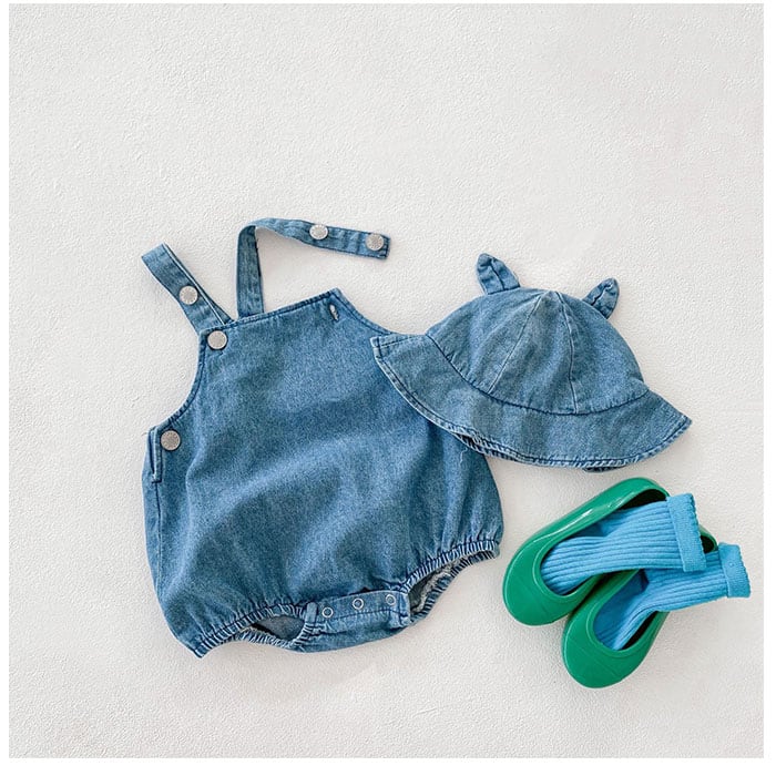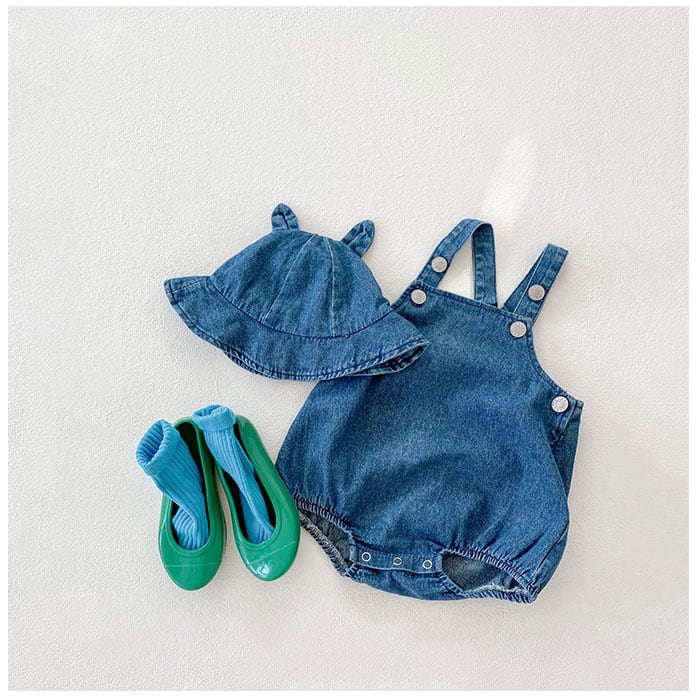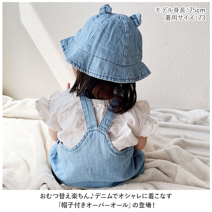 ・おむつ替え楽ちん♪デニムでオシャレに着こなす「帽子付きオーバーオール」の登場!