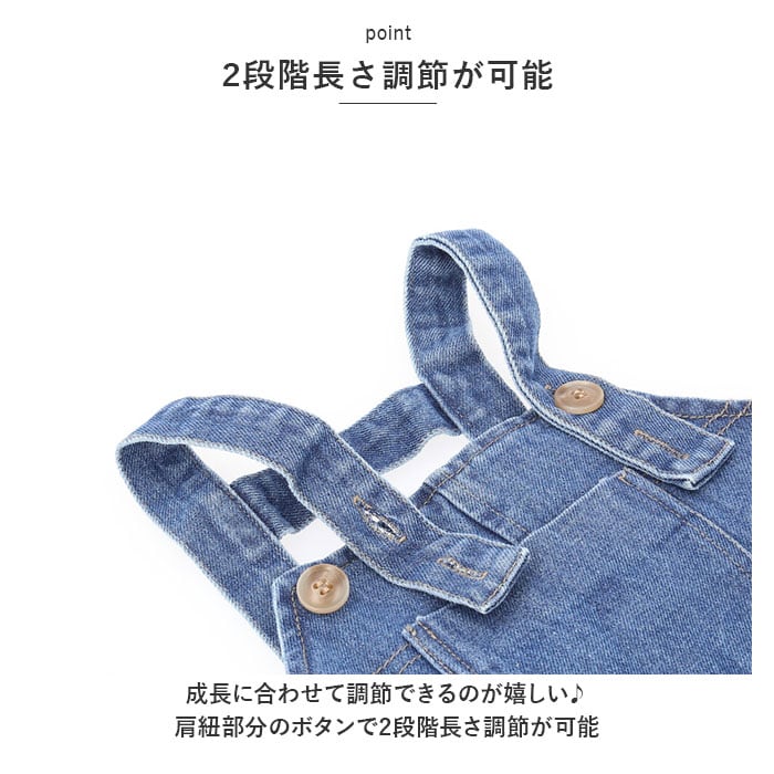 ・成長に合わせて調節できるのが嬉しい♪肩紐部分のボタンで2段階長さ調節が可能。