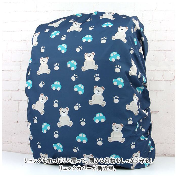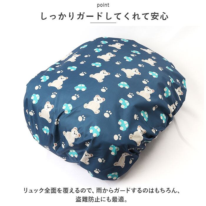 ・伸縮性のあるゴム仕様のカバー。お手持ちのリュックに被せるだけで、リュックのサイズに合わせてぴったりフィット!