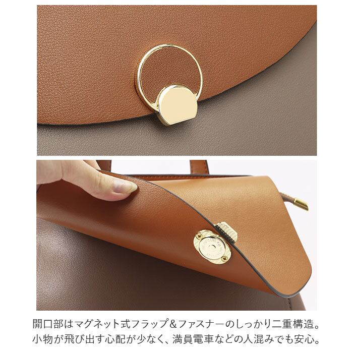 ・開口部はマグネット式フラップ&ファスナーのしっかり二重構造。小物が飛び出す心配が少なく、満員電車などの人混みでも安心。
