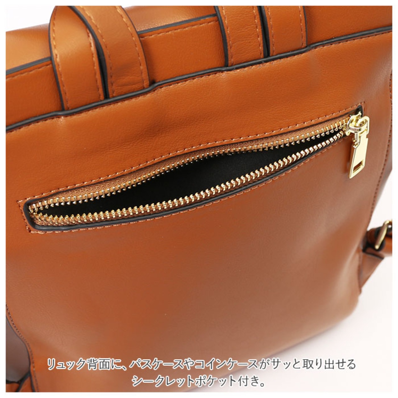 ・リュック背面に、パスケースやコインケースがサッと取り出せるシークレットポケット付き。