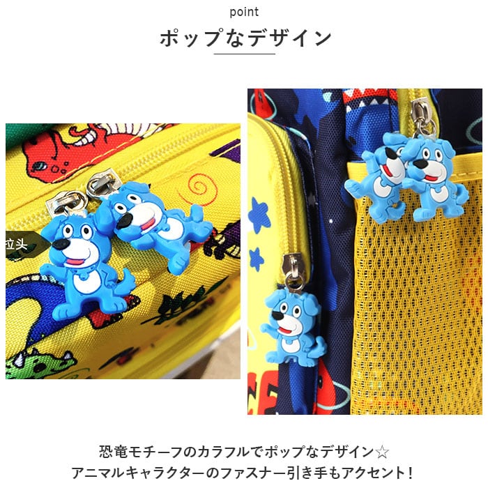 ・恐竜モチーフのカラフルでポップなデザイン☆アニマルキャラクターのファスナー引き手もアクセント!