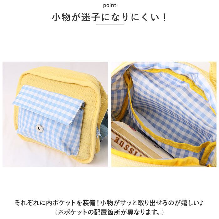・それぞれに内ポケットを装備!小物がサッと取り出せるのが嬉しい♪(※ポケットの配置箇所が異なります。)