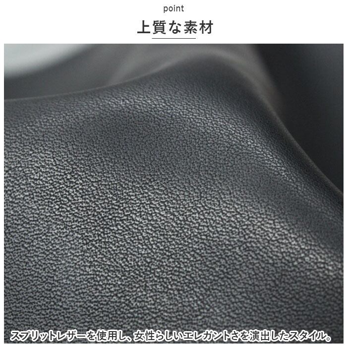 ・スプリットレザーを使用し、女性らしいエレガントさを演出したスタイル。