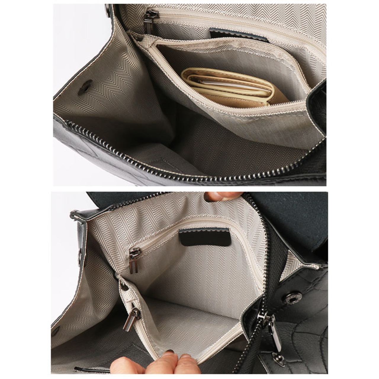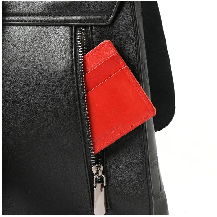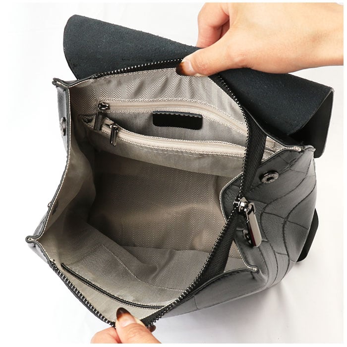 ・マグネットボタンの付いたフラップを開くと、開口部はさらにファスナー式になっていて防犯面でも安心。