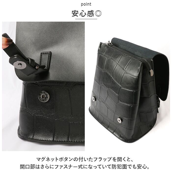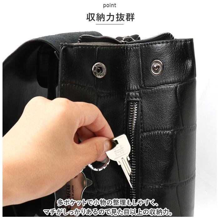 ・高級感あるクロコダイル調の型押しデザインリュックが発売。