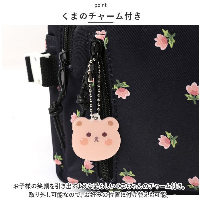 ・お子様の笑顔を引き出すような愛らしいくまちゃんのチャーム付き。