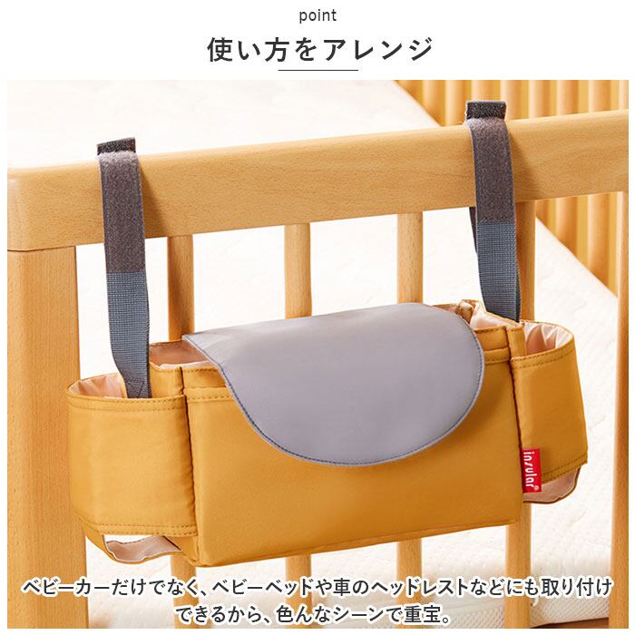 ・赤ちゃんのケアグッズをひとまとめに!ベビーカーに吊り下げることができて、お出掛けに便利な「ベビーカーバッグ」が新登場。