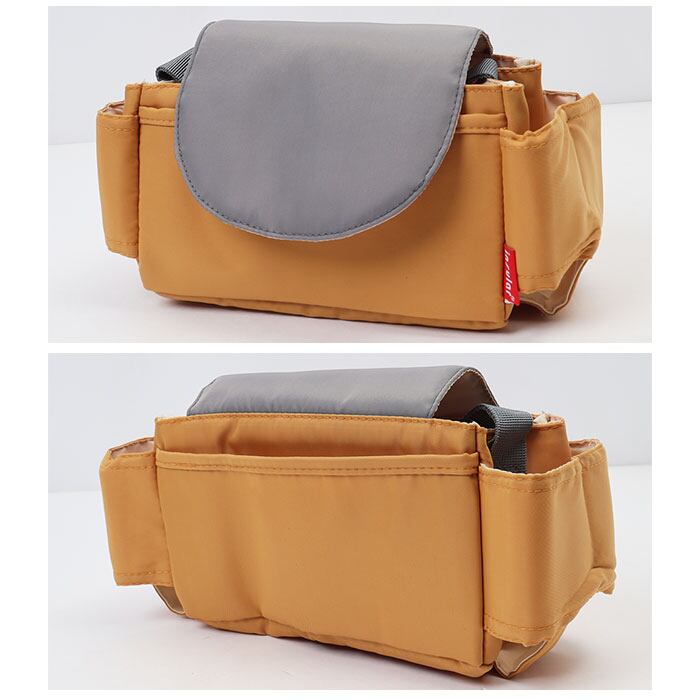・両サイドのポケットには、哺乳瓶やボトル類をIN。フラップ内側のフロントポケットとバックポケットには小物を収納。