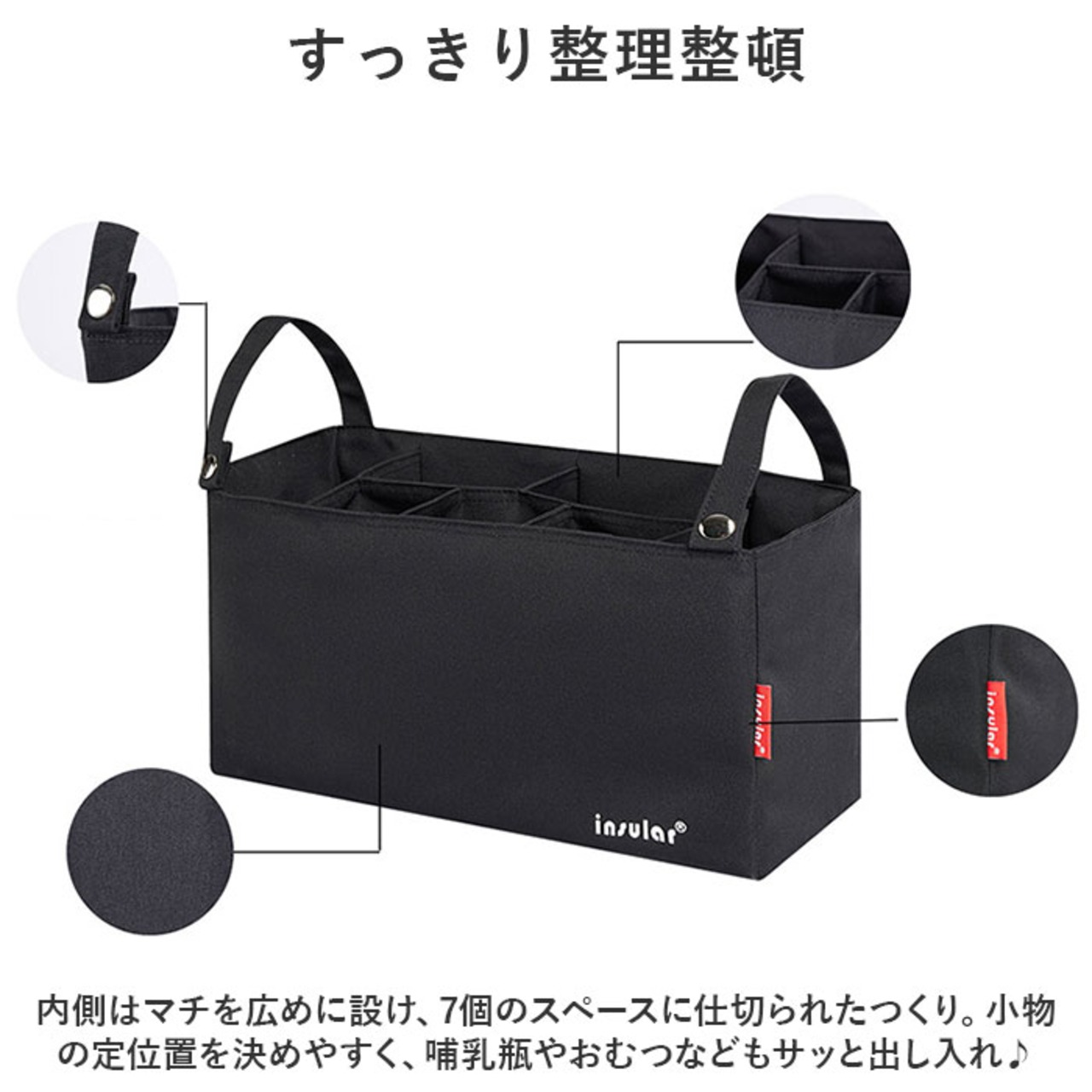 ・内側はマチを広めに設け、7個のスペースに仕切られたつくり。小物の定位置を決めやすく、哺乳瓶やおむつなどもサッと出し入れ♪