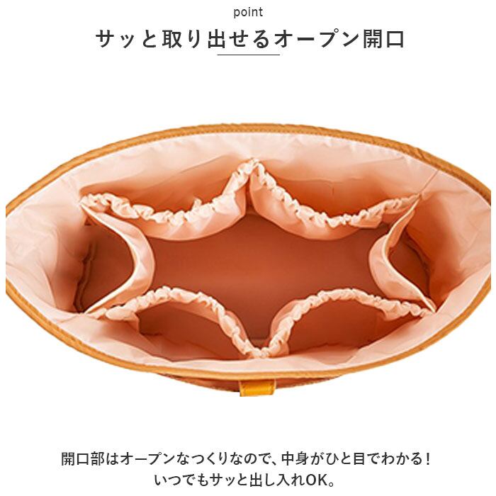 ・内側:ギャザーポケット×4、ボトルポケット×2