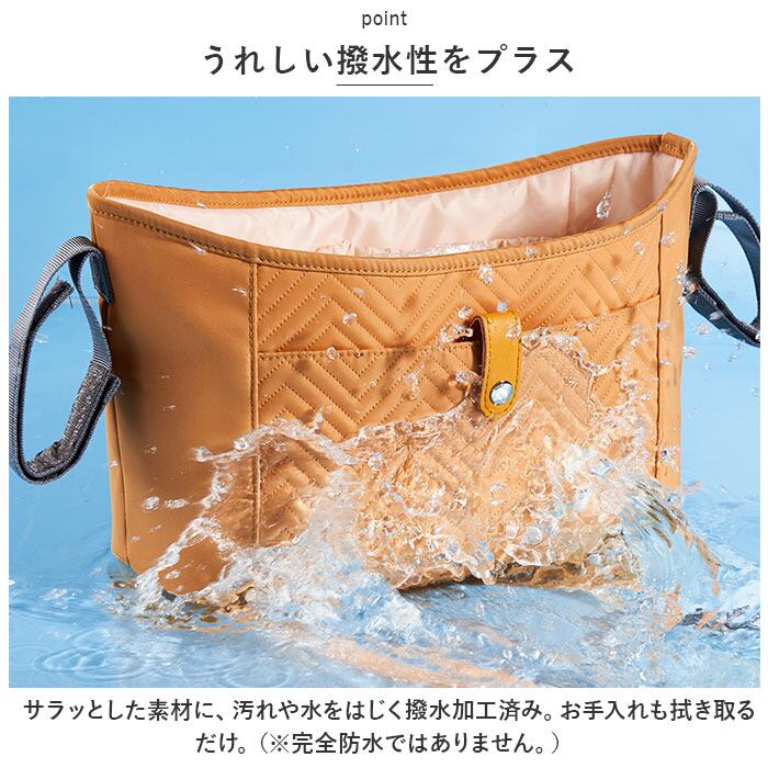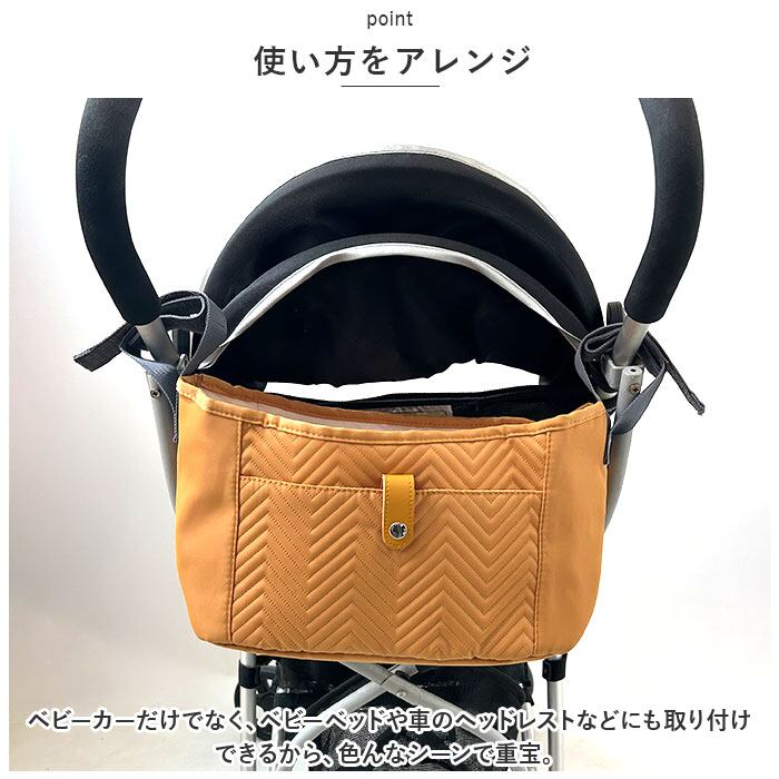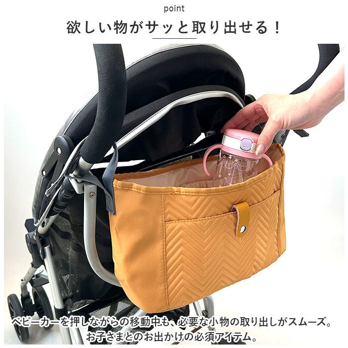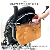 ・ベビーカーを押しながらの移動中も、必要な小物の取り出しがスムーズ。お子さまとのお出かけの必須アイテム。