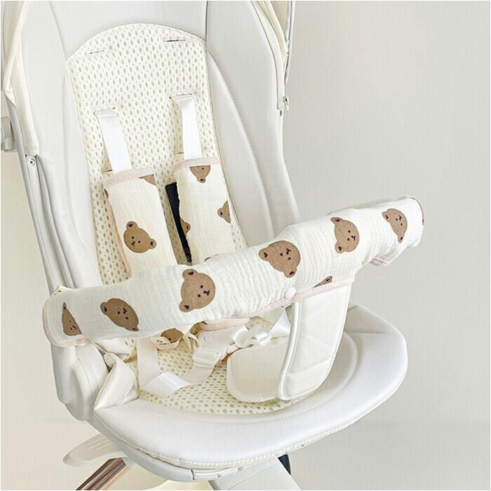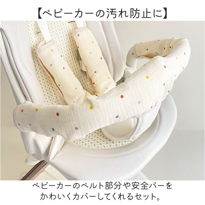 ・ベビーカーのベルト部分や安全バーをかわいくカバーしてくれるセット。
