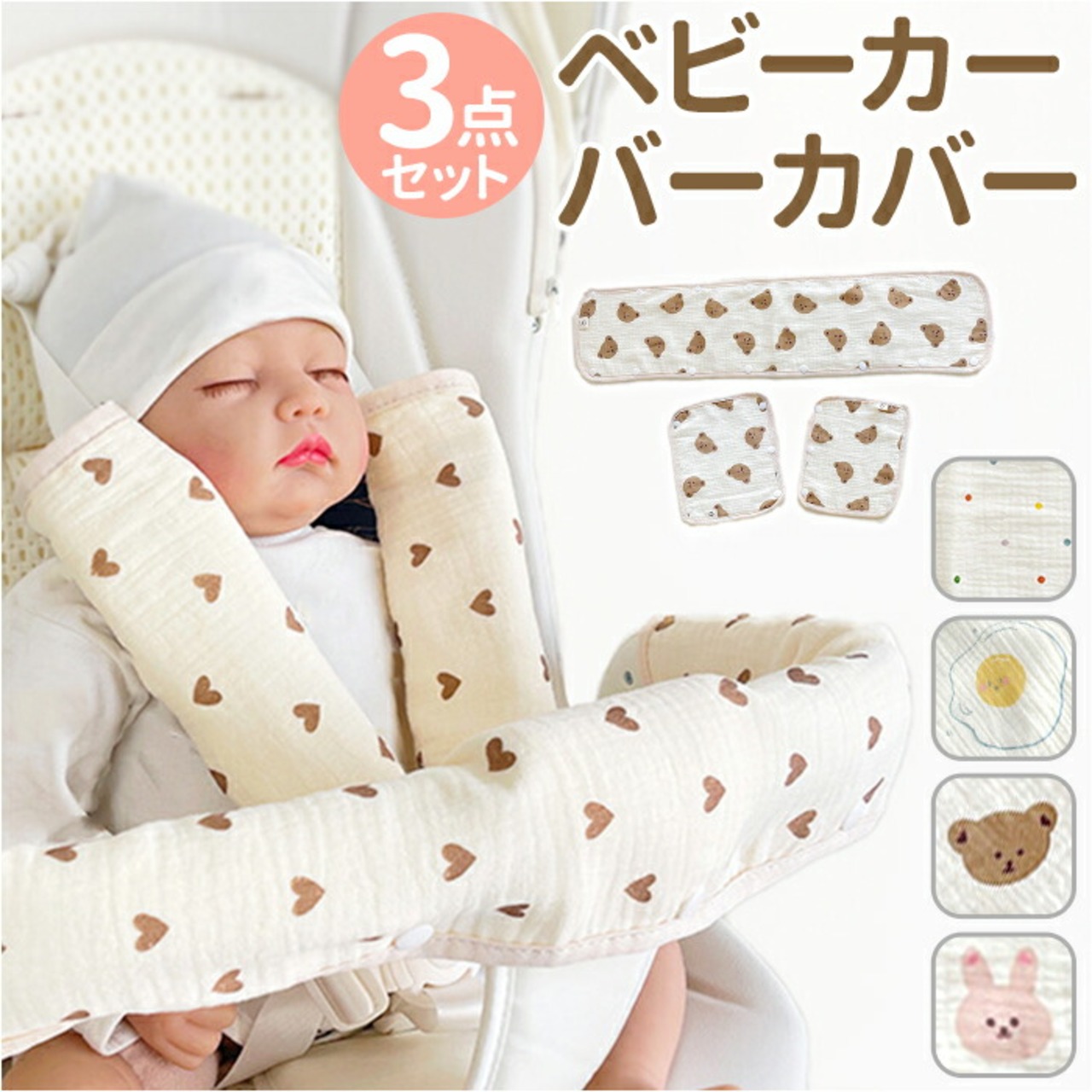 ベビーカー カバー 3点セット 通販 シートベルトカバー バーカバー ベルトパッド よだれパッド フロントカバー 手すりパッド クッション コットン セーフティーバー アームレスト アクセサリー ベビー 赤ちゃん かわいい 可愛い 汚れ防止 出産祝い ギフト