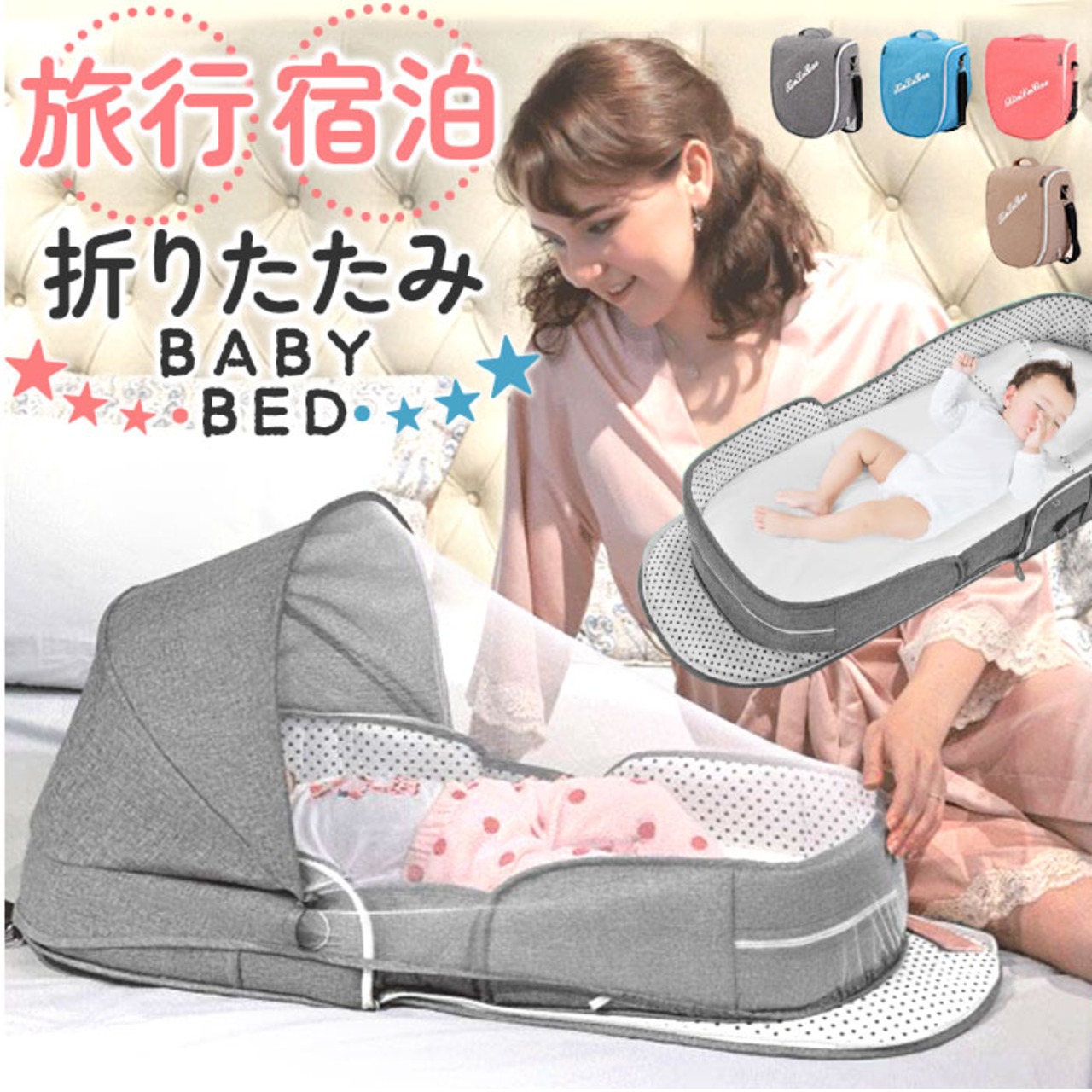 ベビーベッド 折りたたみ 持ち運び 通販 ベッドインベッド ベビーインベッド クーハン クーファン オムツ交換 折り畳み ショルダーバッグ ベビー 赤ちゃん 添い寝 お昼寝 蚊帳付き 収納 転落防止 洗える 虫よけ 風よけ お出かけ 旅行 帰省 里帰り 新生児