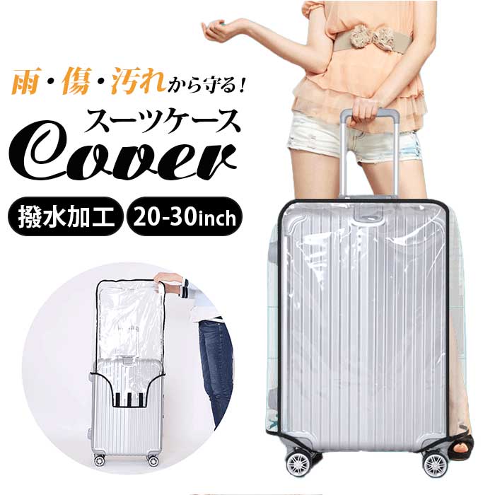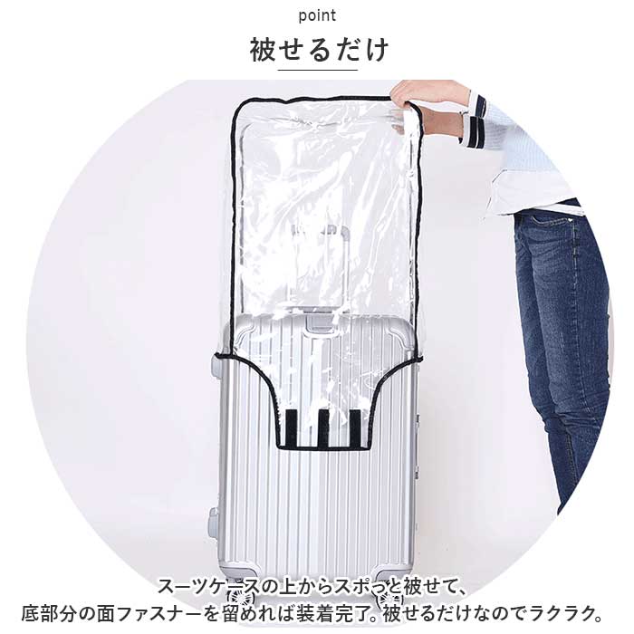 スーツケース カバー クリア 通販 キャリーバッグ キャリーケース レインカバー 雨 バッグカバー 傷 汚れ ビニール 保護 透明 ラゲッジ トランク トラベル 旅行 コンパクト ビジネス 海外 国内 軽い 着脱 簡単 出張 修学旅行 面ファスナー シンプル