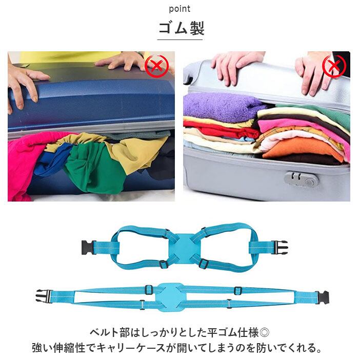 ・ベルト部はしっかりとした平ゴム仕様◎強い伸縮性でキャリーケースが開いてしまうのを防いでくれる。