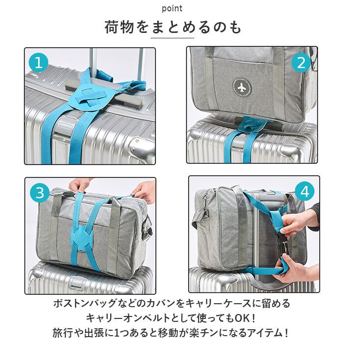 ・ボストンバッグなどのカバンをキャリーケースに留めるキャリーオンベルトとして使ってもOK!旅行や出張に1つあると移動が楽チンになるアイテム!