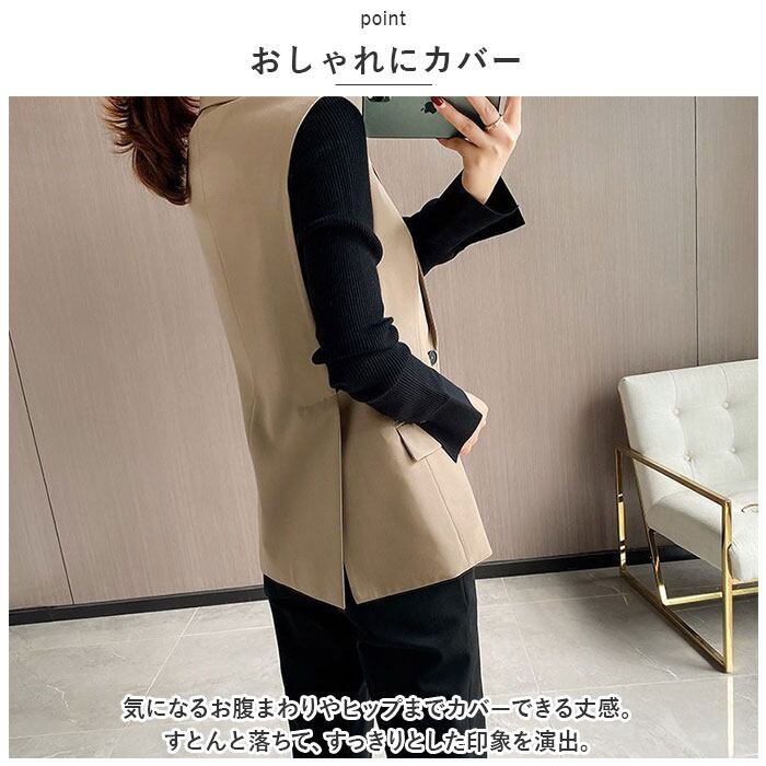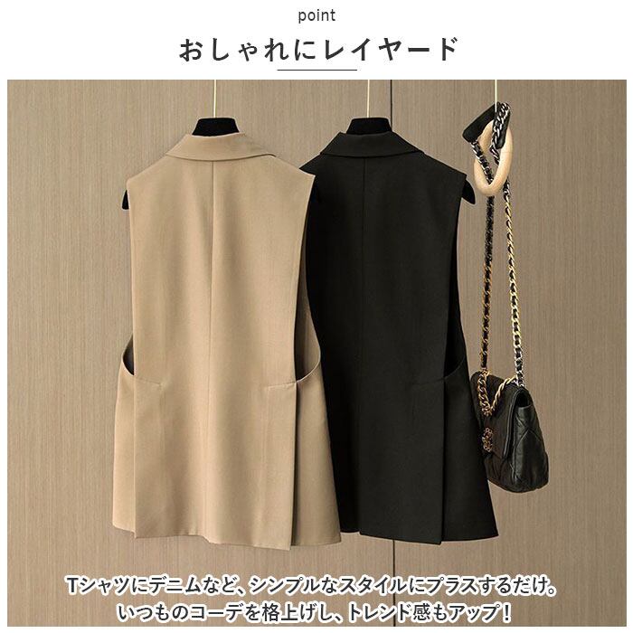 ジレ ベスト レディース 通販 アウター ジレベスト フォーマル 春 夏 秋 冬 おしゃれ オシャレ 前開き ボタン ロング テーラード ジャケット スーツベスト ノースリーブ シンプル 無地 通勤 通学 上品 きれいめ トップス